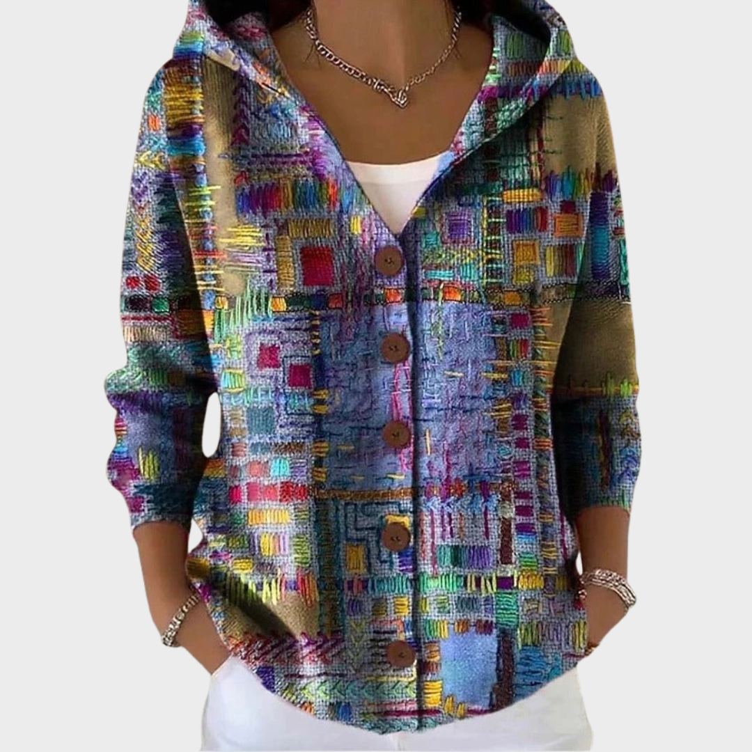 Tento útulný cardigan je navržen pro ženy, které si cení tepla, svobody pohybu a uvolněného, veselého vzhledu, který se cítí dobře po celý den. Ideální pro chladnější rána, neformální odpoledne nebo prostě pro pohodlné chvíle doma.