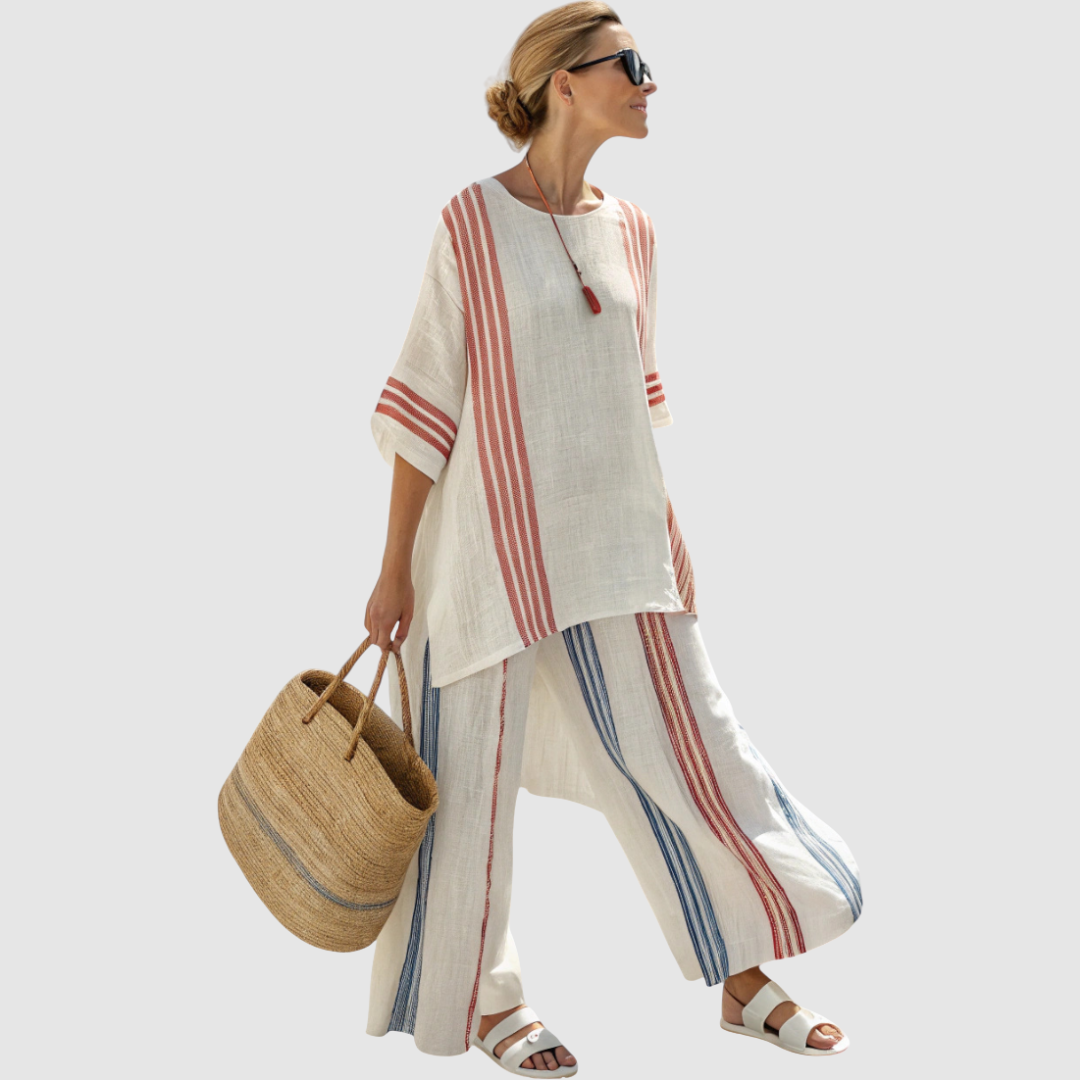 Rozálie - Etnická sada z bambusového lnu s pruhy – Kristýna Praha